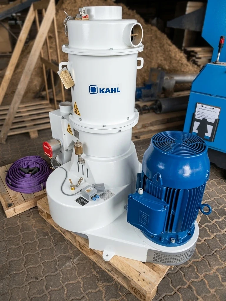 Cette unité de granulation d'occasion à partir de palettes vous permet de transformer un déchet en ressource énergétique, avec une presse KAHL 30 kW fiable, disponible immédiatement en Alsace.